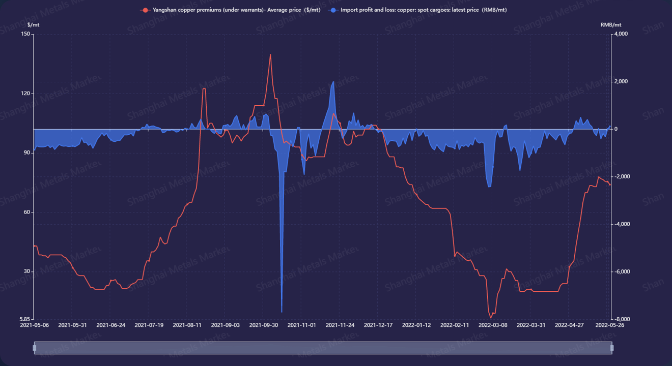 SMM Yangshan Copper Premiums and Import Profit/Loss